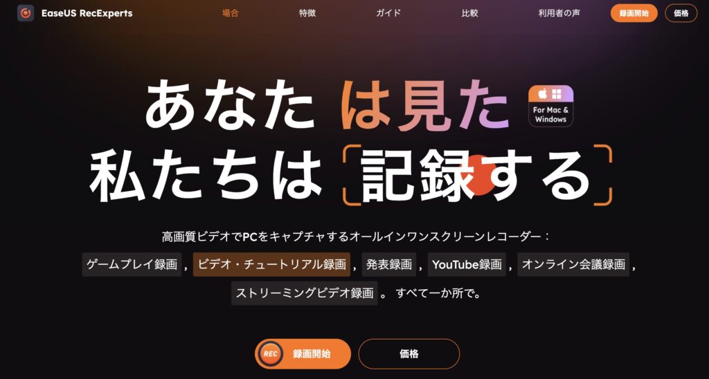 EaseUS RecExpertsは、初心者でも直感的に操作できる画面録画ソフトとして人気があります。シンプルなUI設計で、録画範囲の指定や音声設定などもクリック操作だけで完結するため、初めて録画ソフトを使う方でも迷わず使えます。