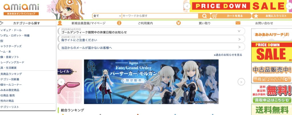あみあみはフィギュアやキャラクターグッズを中心に展開する人気通販サイトで、特に価格の安さが魅力です。予約商品も多く、割引価格で購入できるケースが多いため、コスパ重視のユーザーに支持されています。